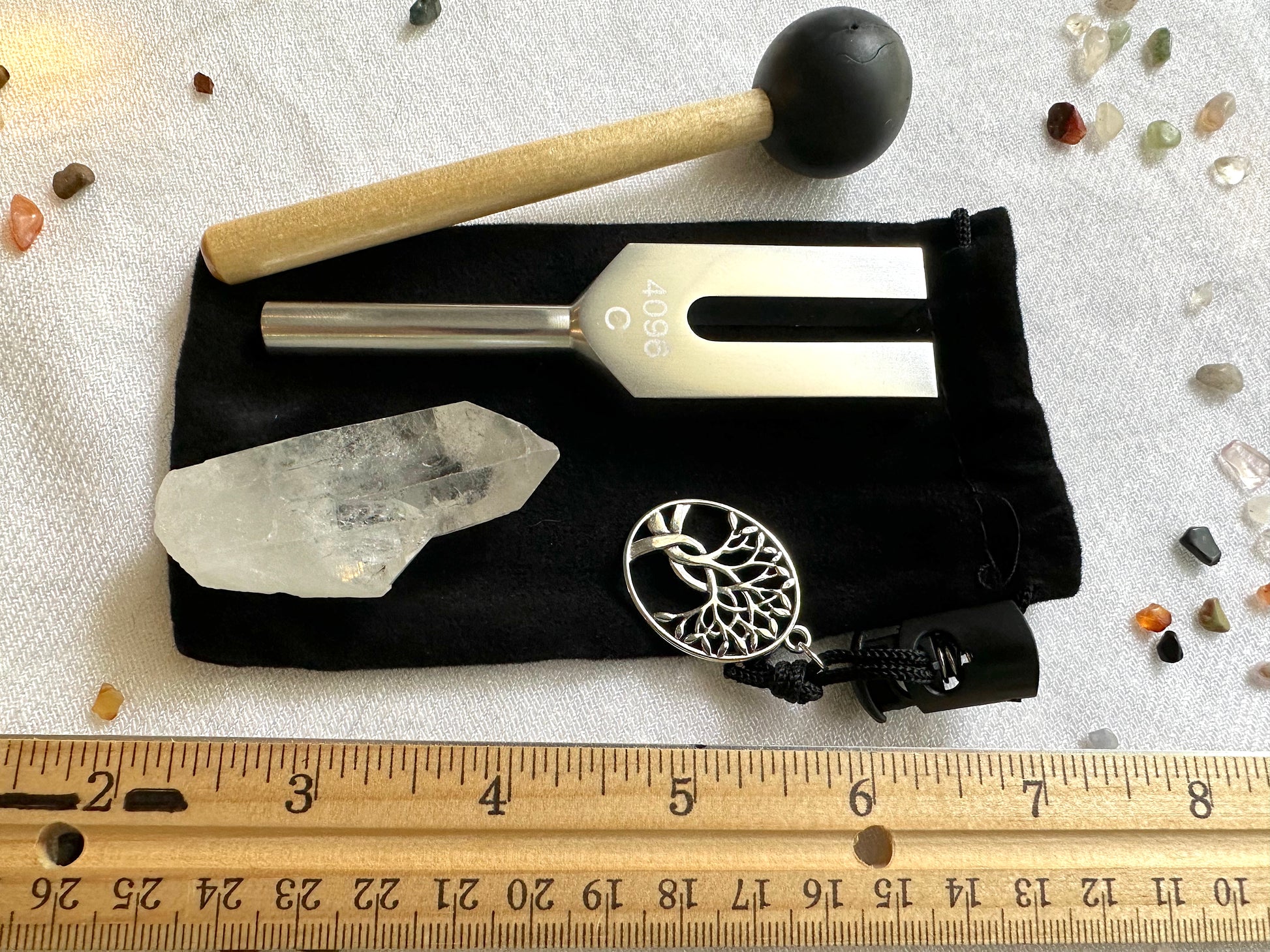 4096 Hz C Tuning Fork and Crystal Set | Crystal Activator | Energy Clearing | Sound Therapy