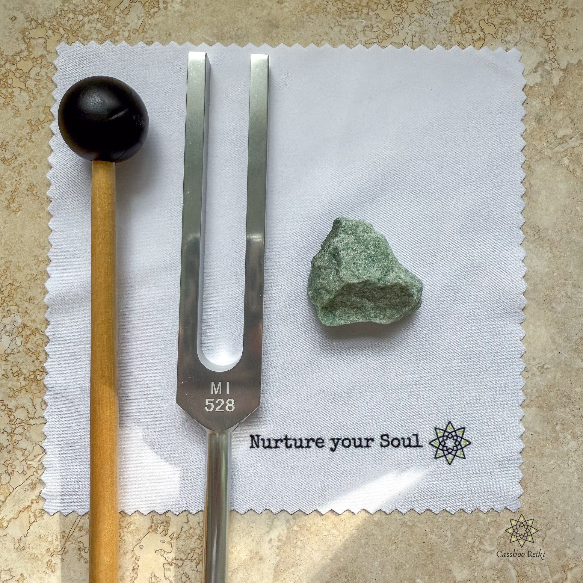 - 528 Hz Aluminum made Tuning Fork and mallet.