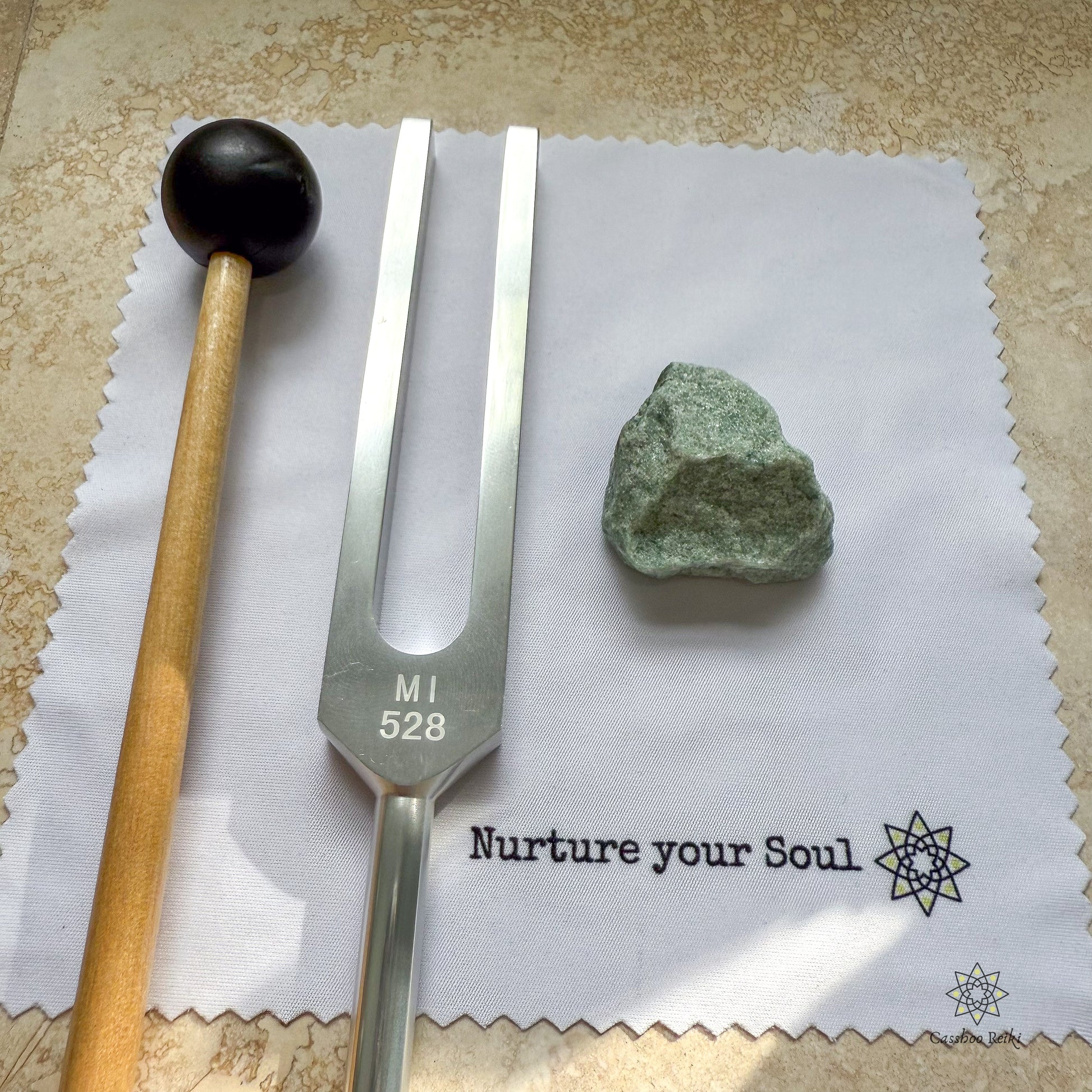 Open your Heart Chakra to receiving love of every nature with this tuning fork and crystal set.