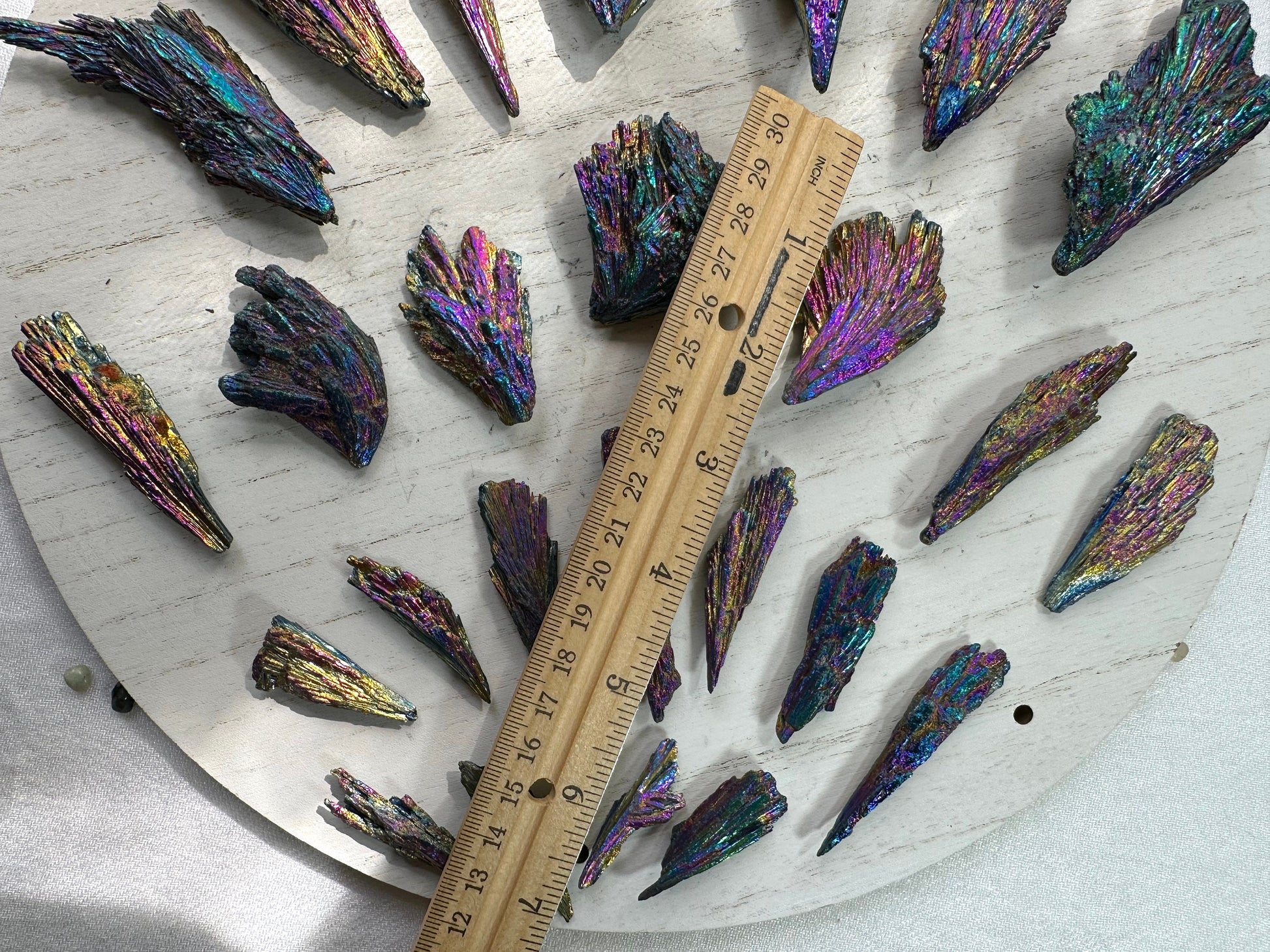 These Witch Brooms don't fly nor clean very well. However, the high frequency of Kyanite makes it a self-cleaning crystal as well as other crystals. It is also highly protective of the home or your living space.