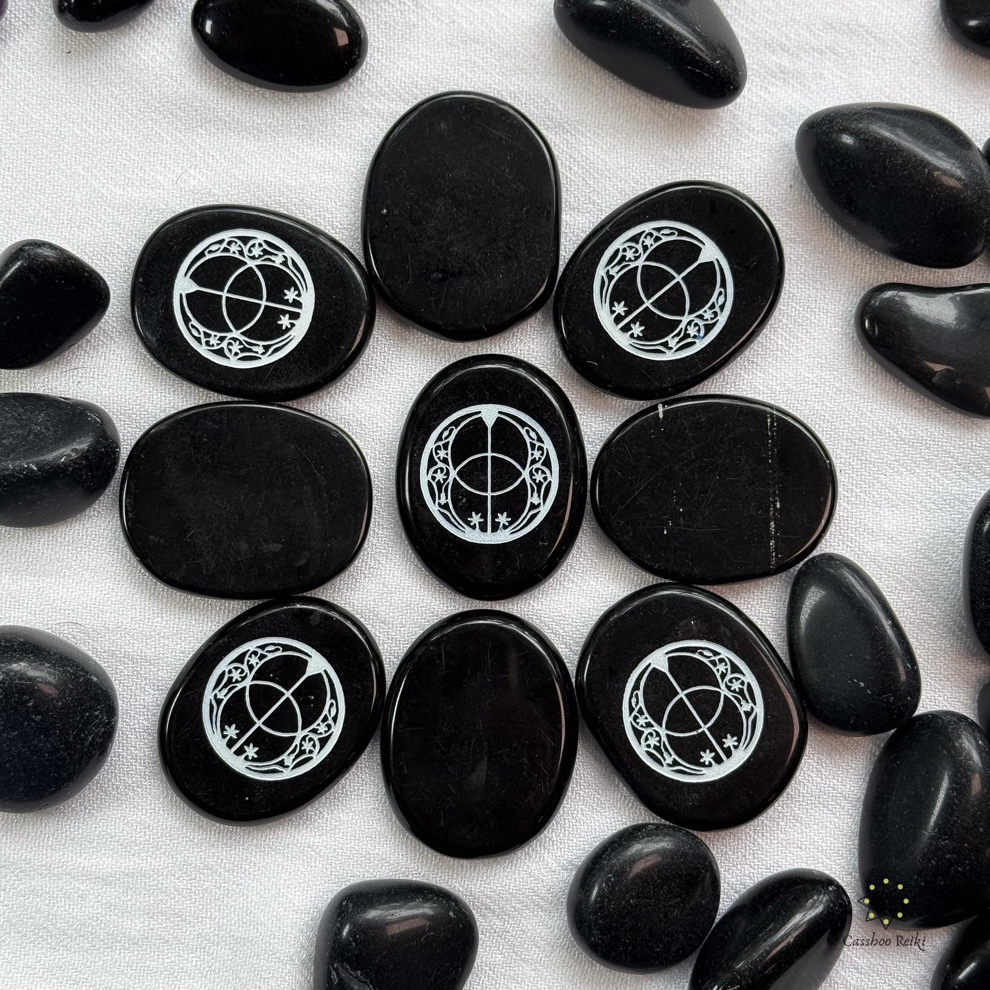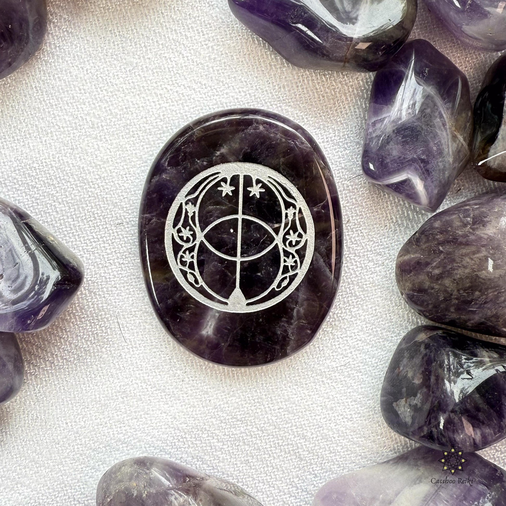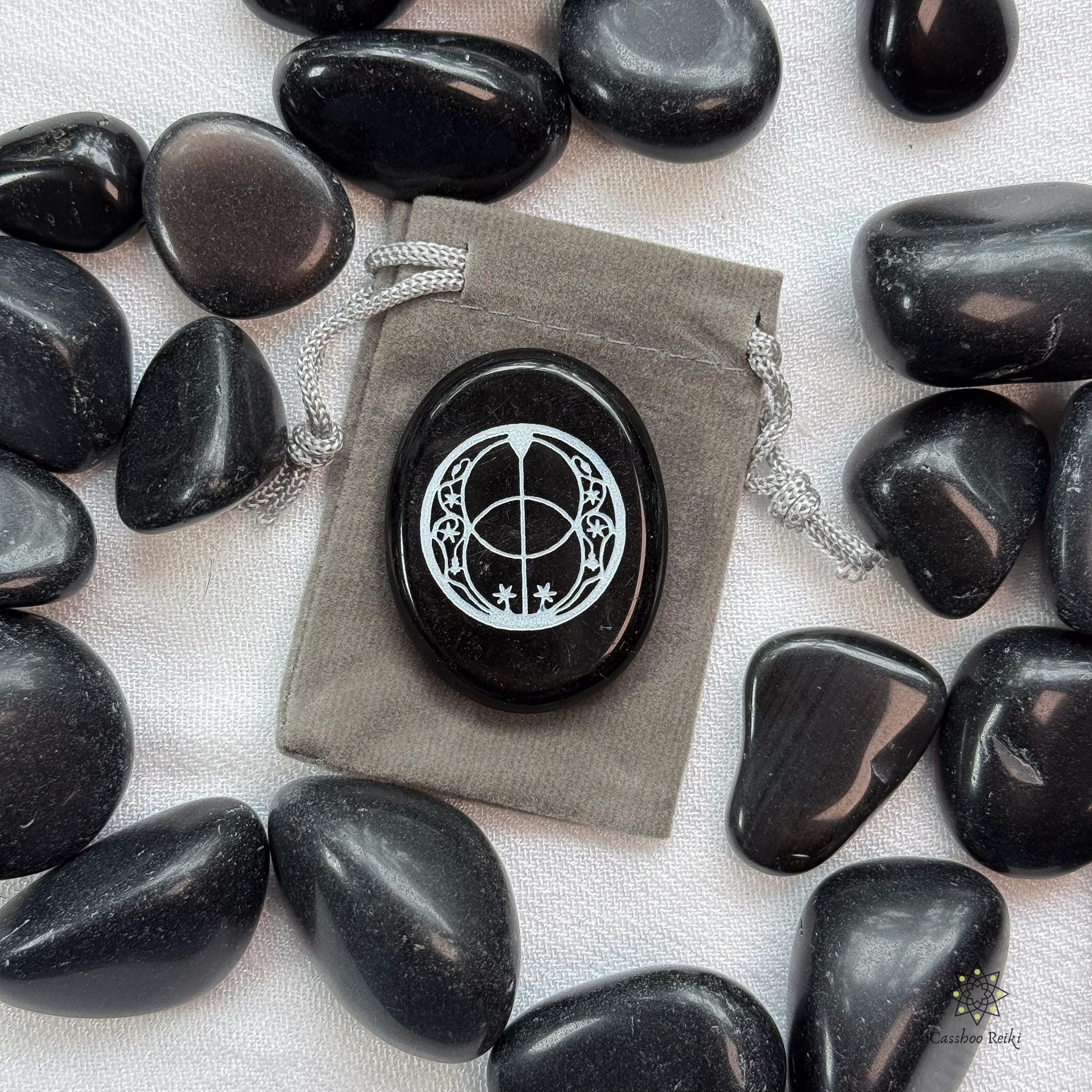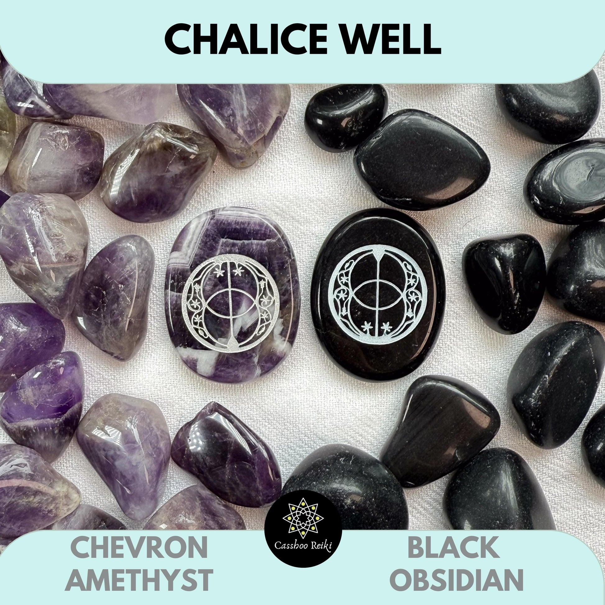 Chalice Well Palm Stones in Chevron Amethyst or Black Obsidian | Vesica Piscis Engraved Palm Stone | Natural Crystal Pocket Stone