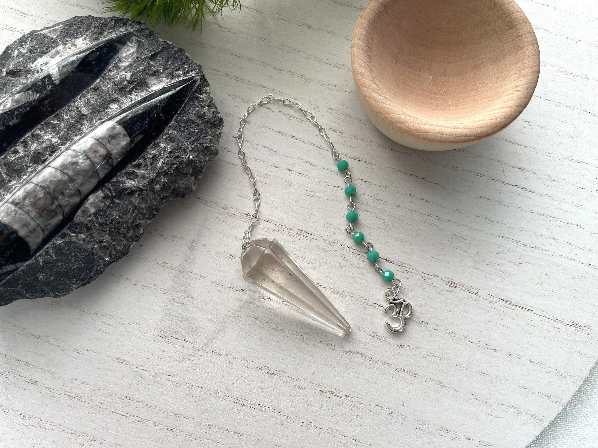 Average size of the entire pendulum is 9 inches (23cm). The actual pendant is about 1.5 inches (4 cm).