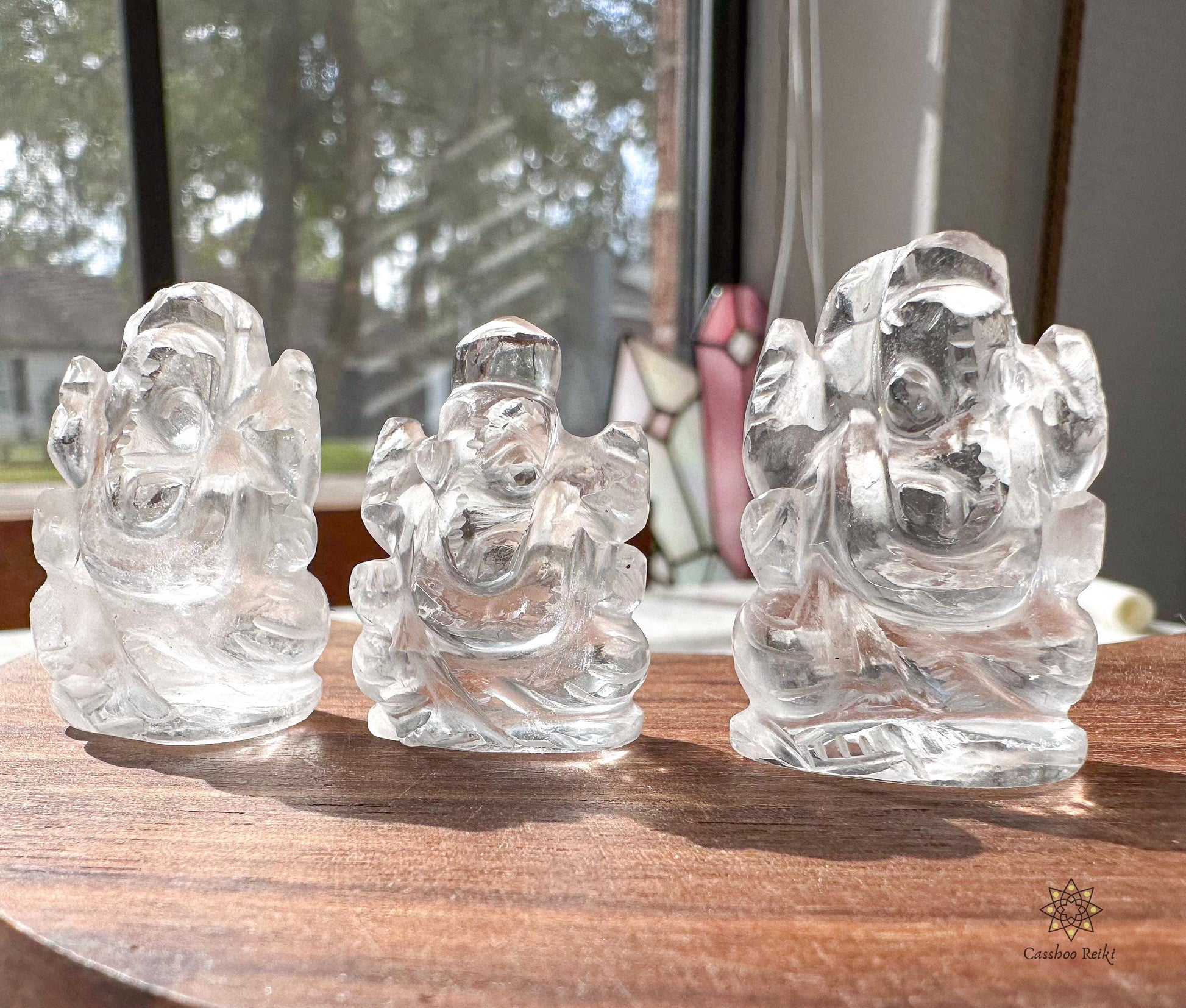 Ganesh Mini Statue in Clear Quartz | Miniature Ganesha Figurine | Gemstone Figurine