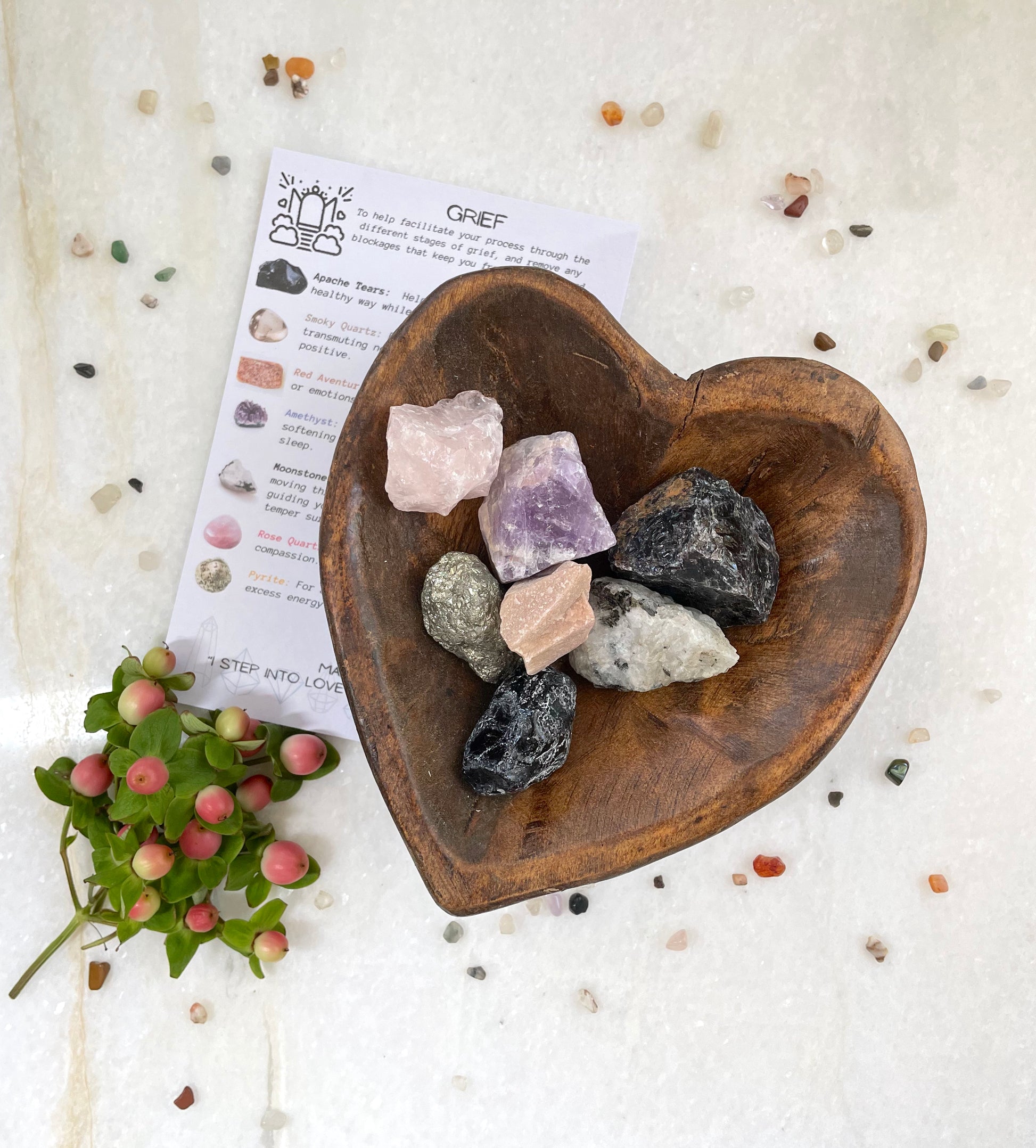 Overcoming Grief: Crystal Set with Wooden Bowl and Guided Meditation | Bereavement Gift | Sympathy Set | Crystals For Self Care