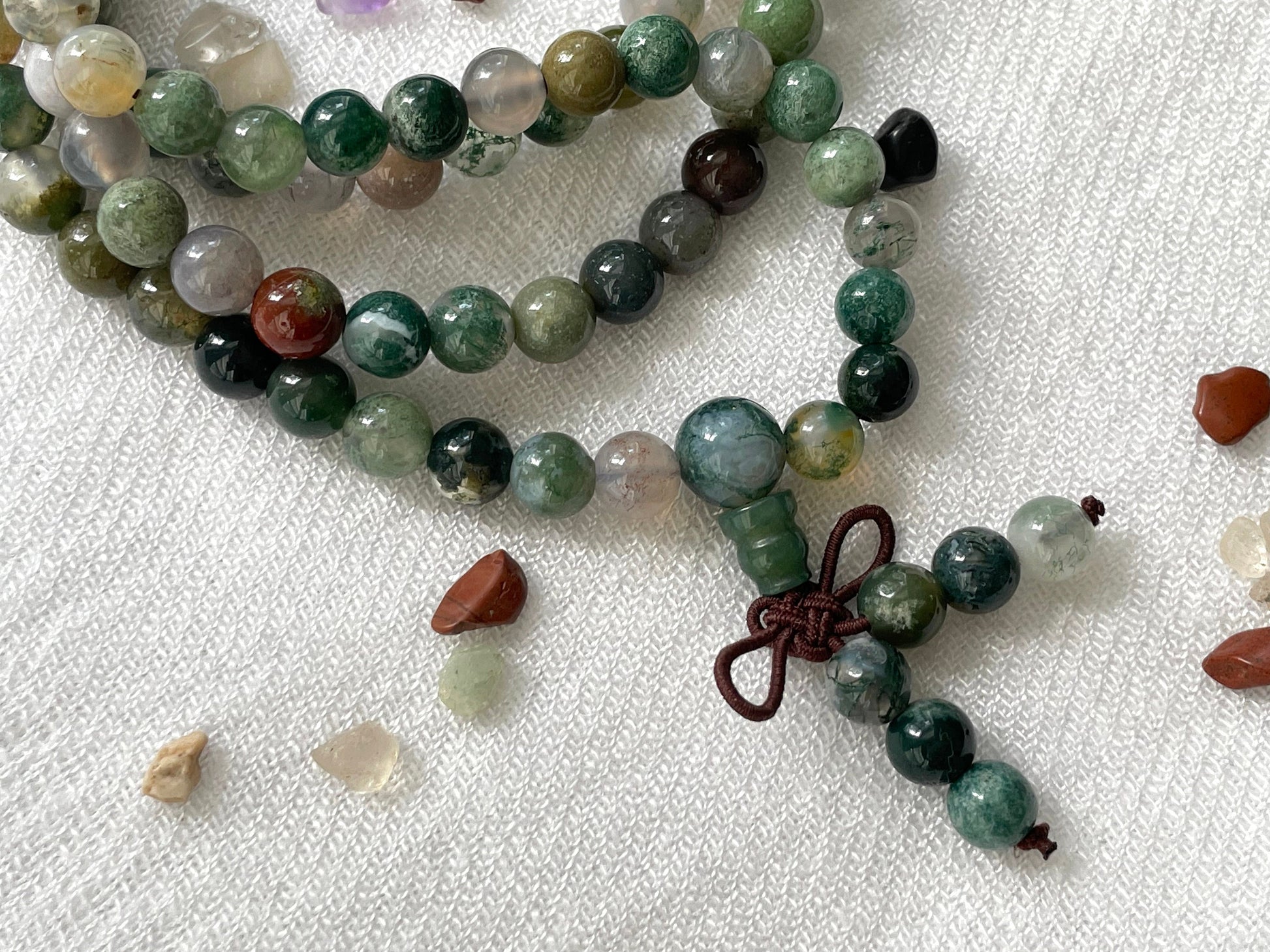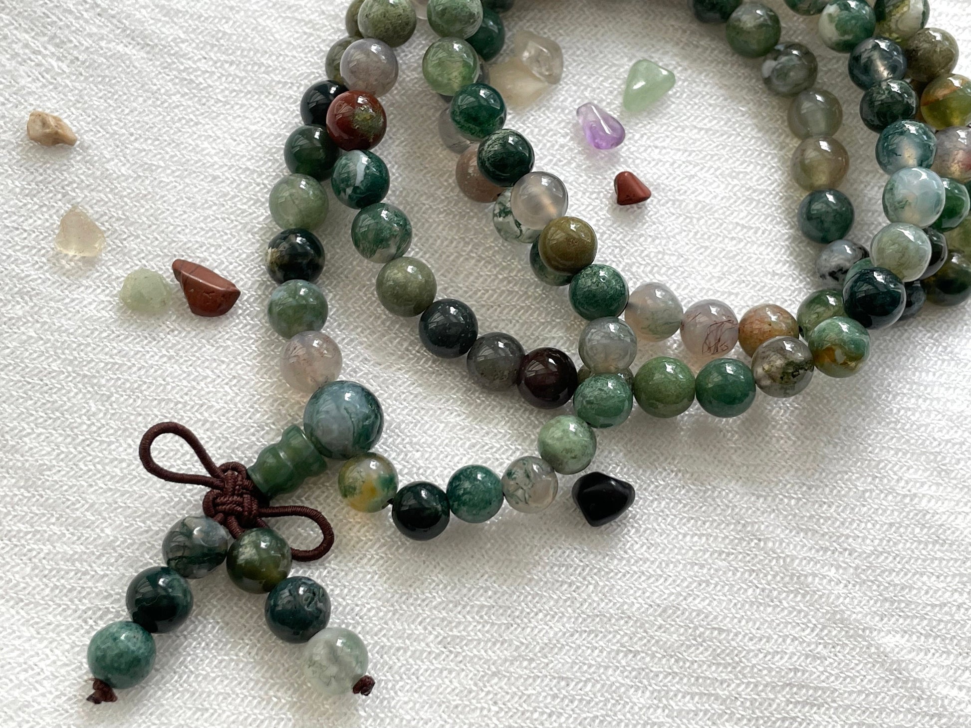 Indian Agate 108 Prayer Beads Necklace and Wrist Mala. Elastic