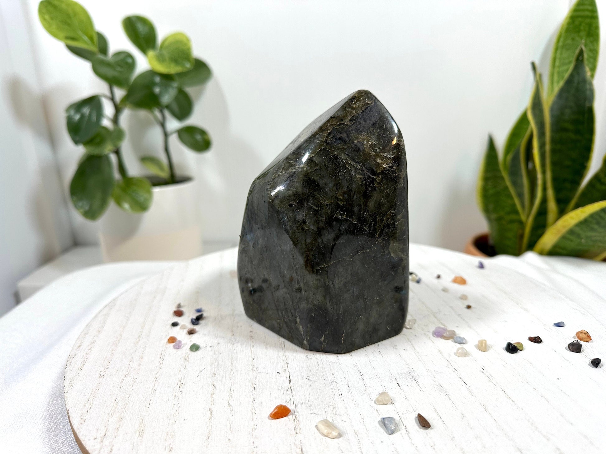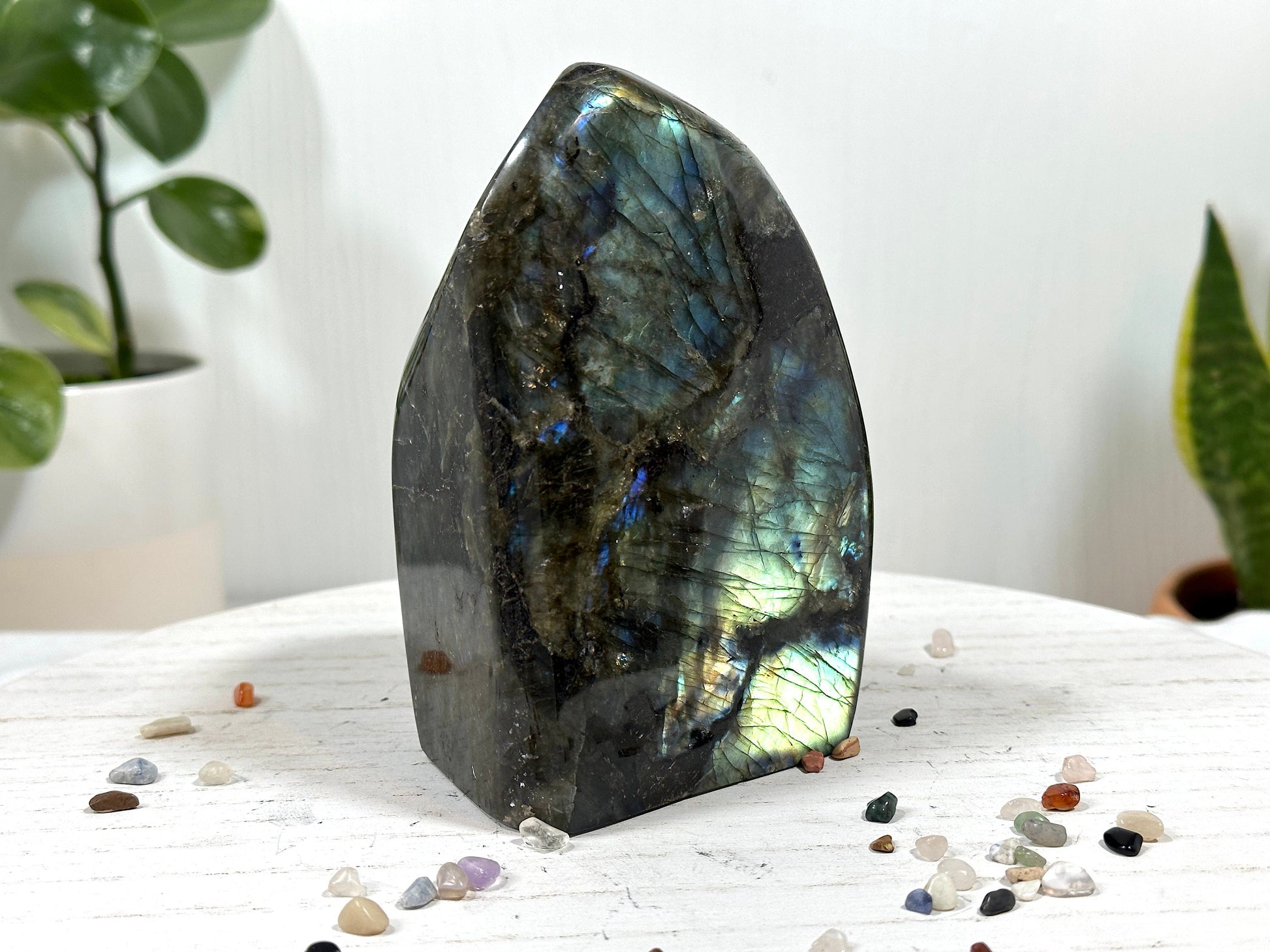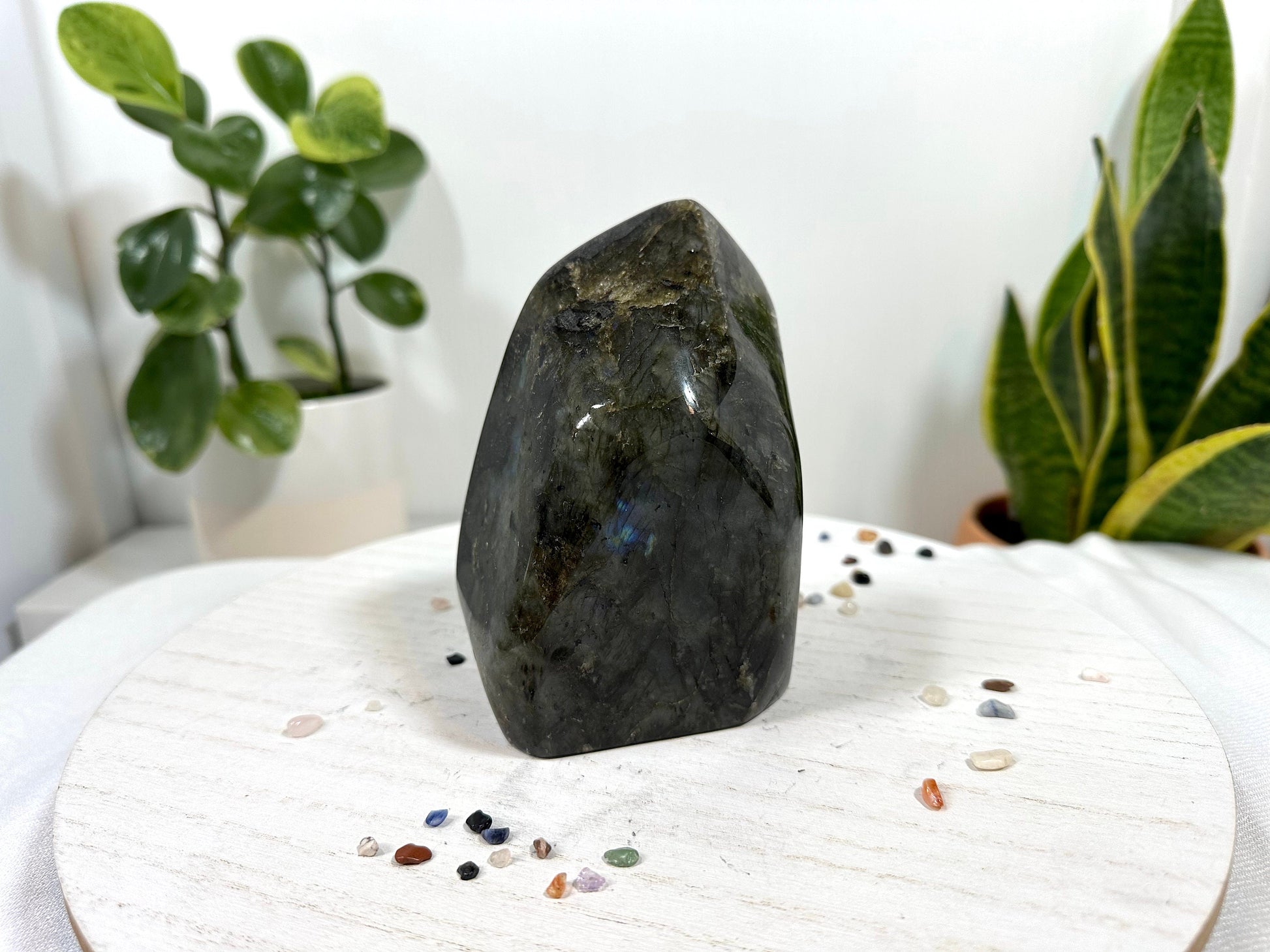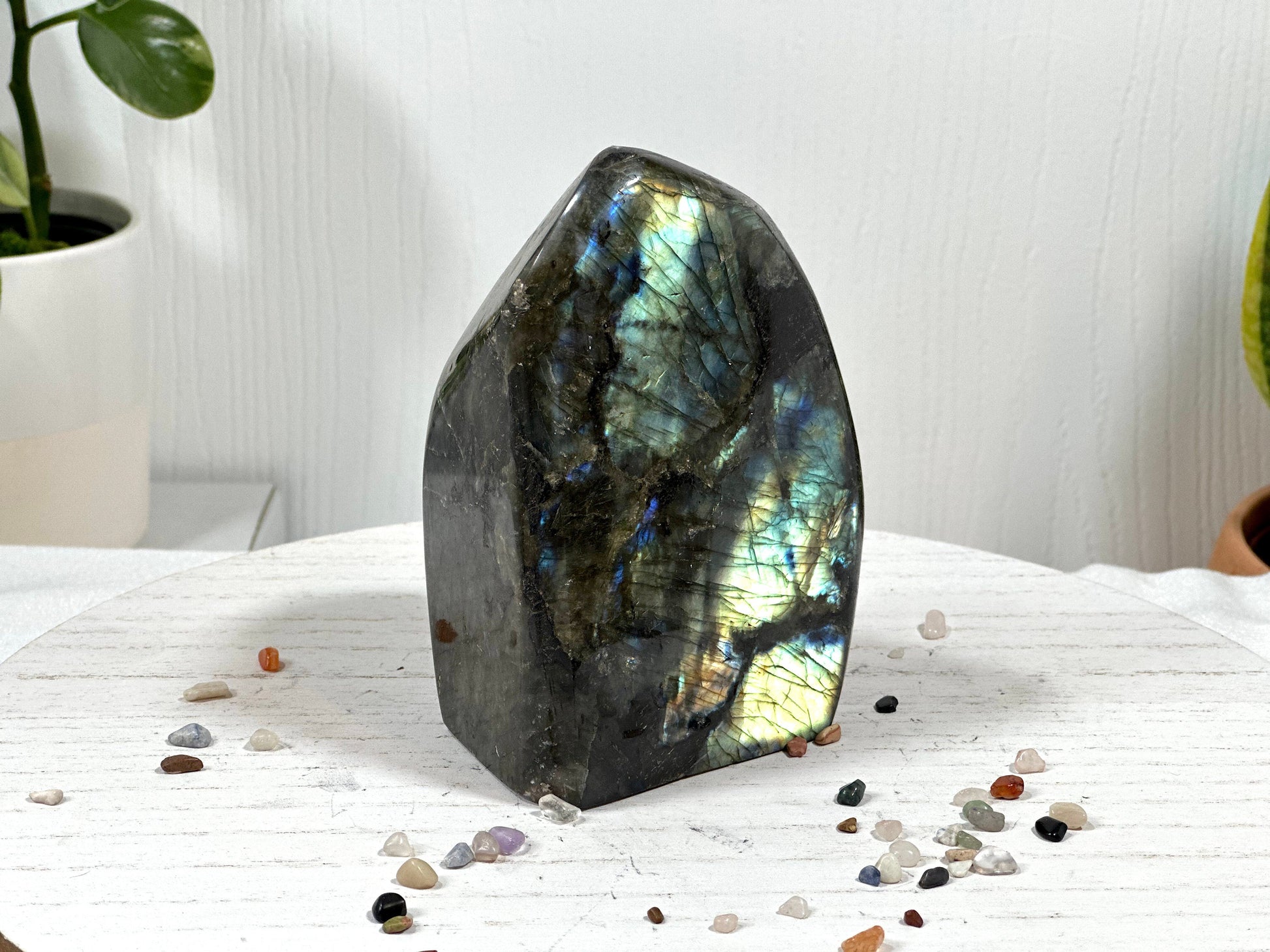 Labradorite also balances the logical and creative sides of the brain. Brings mental sharpness, inspiration, and originality. Helps with insecurity, anxiety and stress. An opportunity magnet.