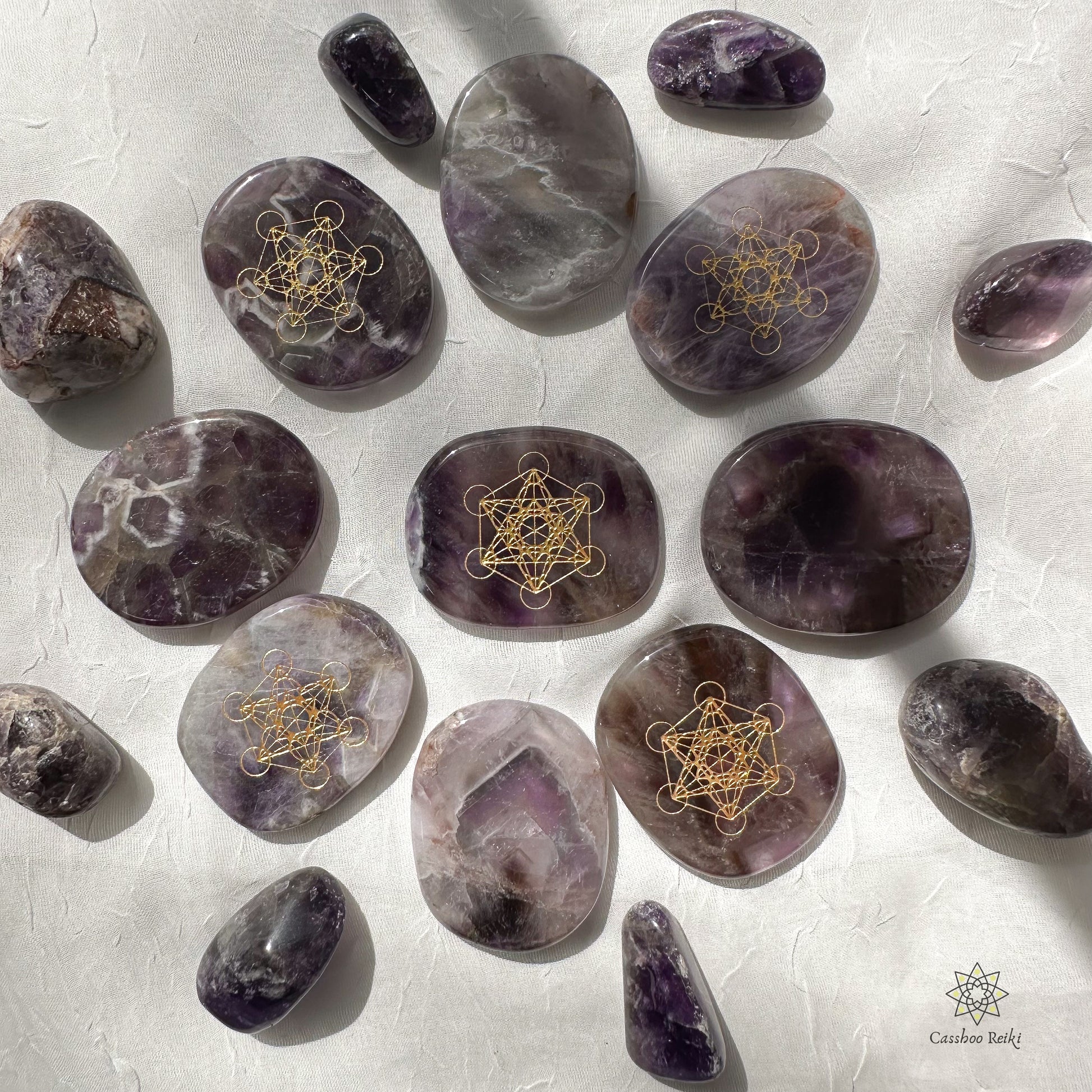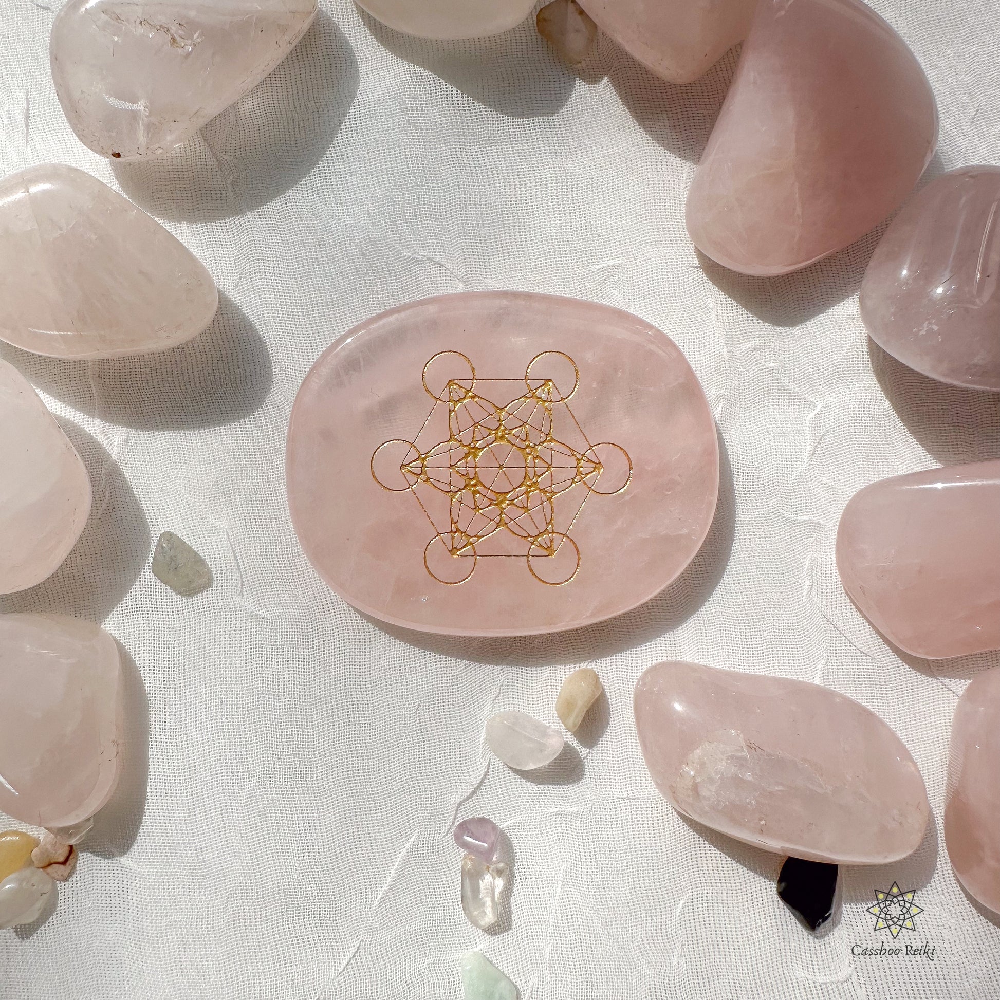 Archangel Metatron Cube etched in Gemstone: Engraved Palm Stone | Etched Crystal Pocket Stone