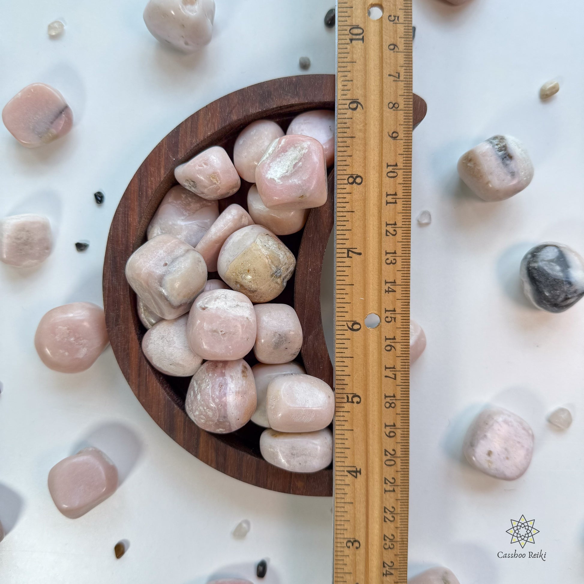 Pink Opal can help with fear, worry or anxiousness. It is useful in dissipating stress and allowing us to become more emotionally centered and calm.