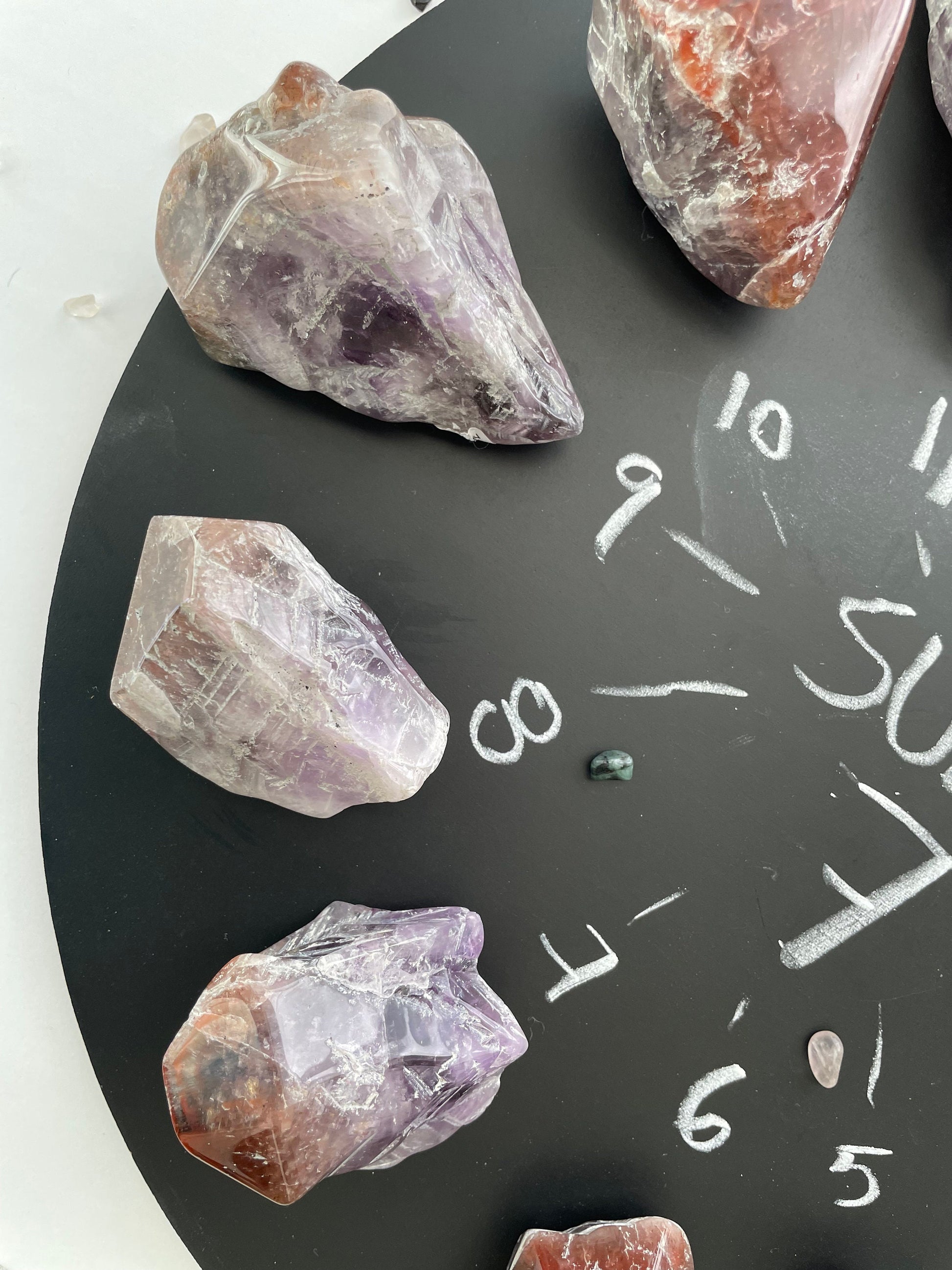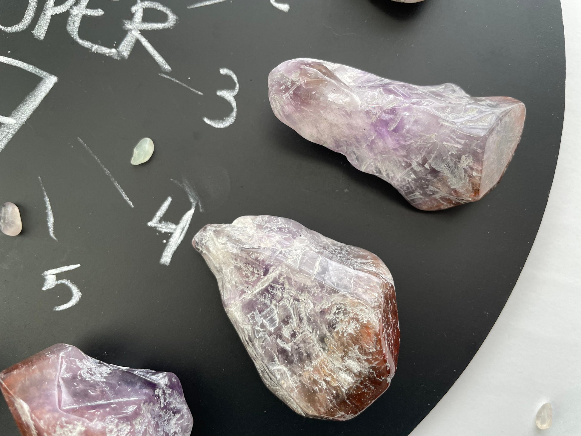 All these combinations of minerals in amethyst are considered "impurities" in scientific lore. Additionally, Cacoxenite - as Super 7 is sometimes called- is in fact a component of Super 7 (and a whole different mineral worth having in any collection). For these reasons, the "Elders of Geology", consider this stone as a "low grade amethyst".