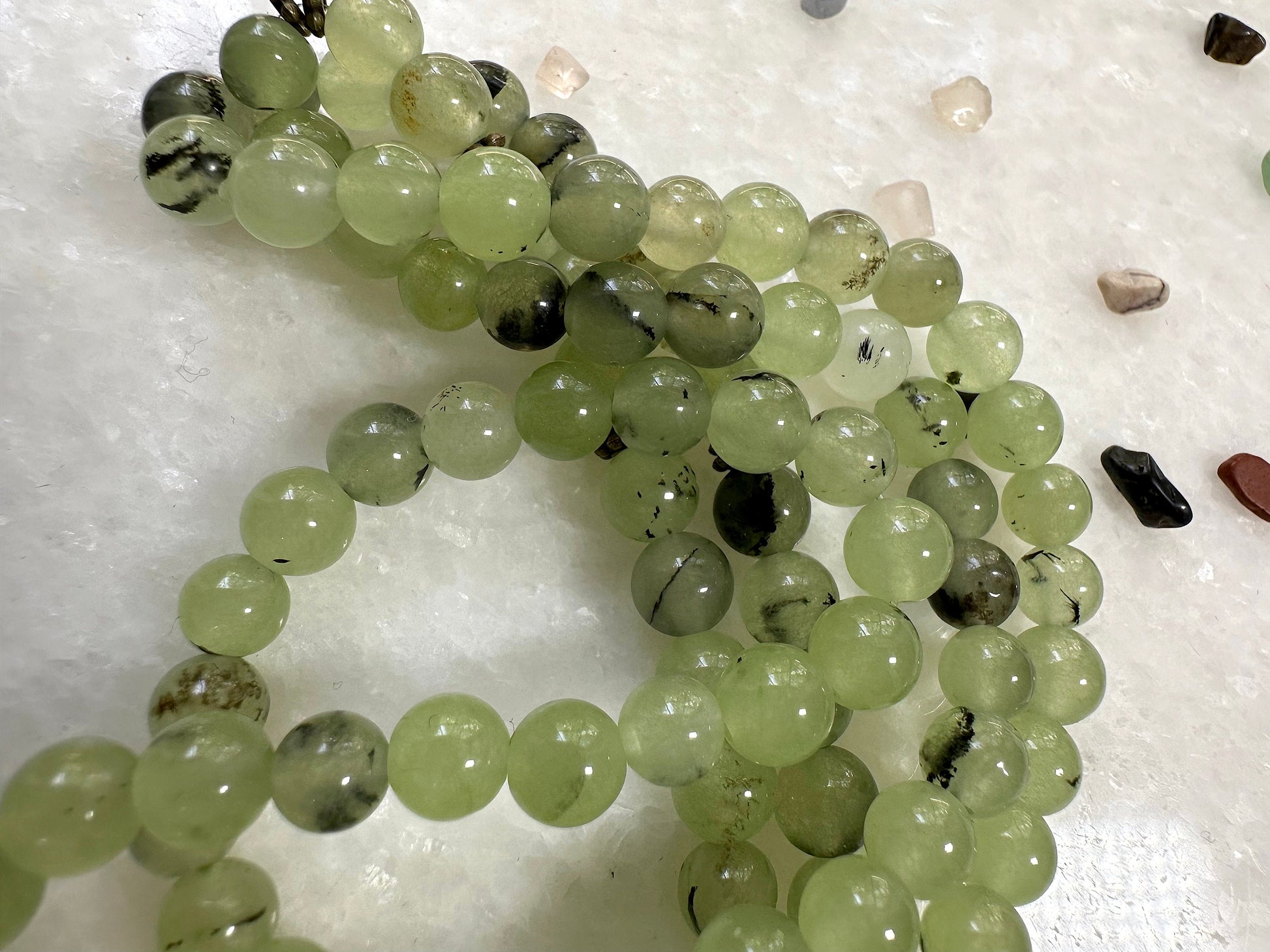 Prehnite Prayer Beads & Wrist Mala. Elastic