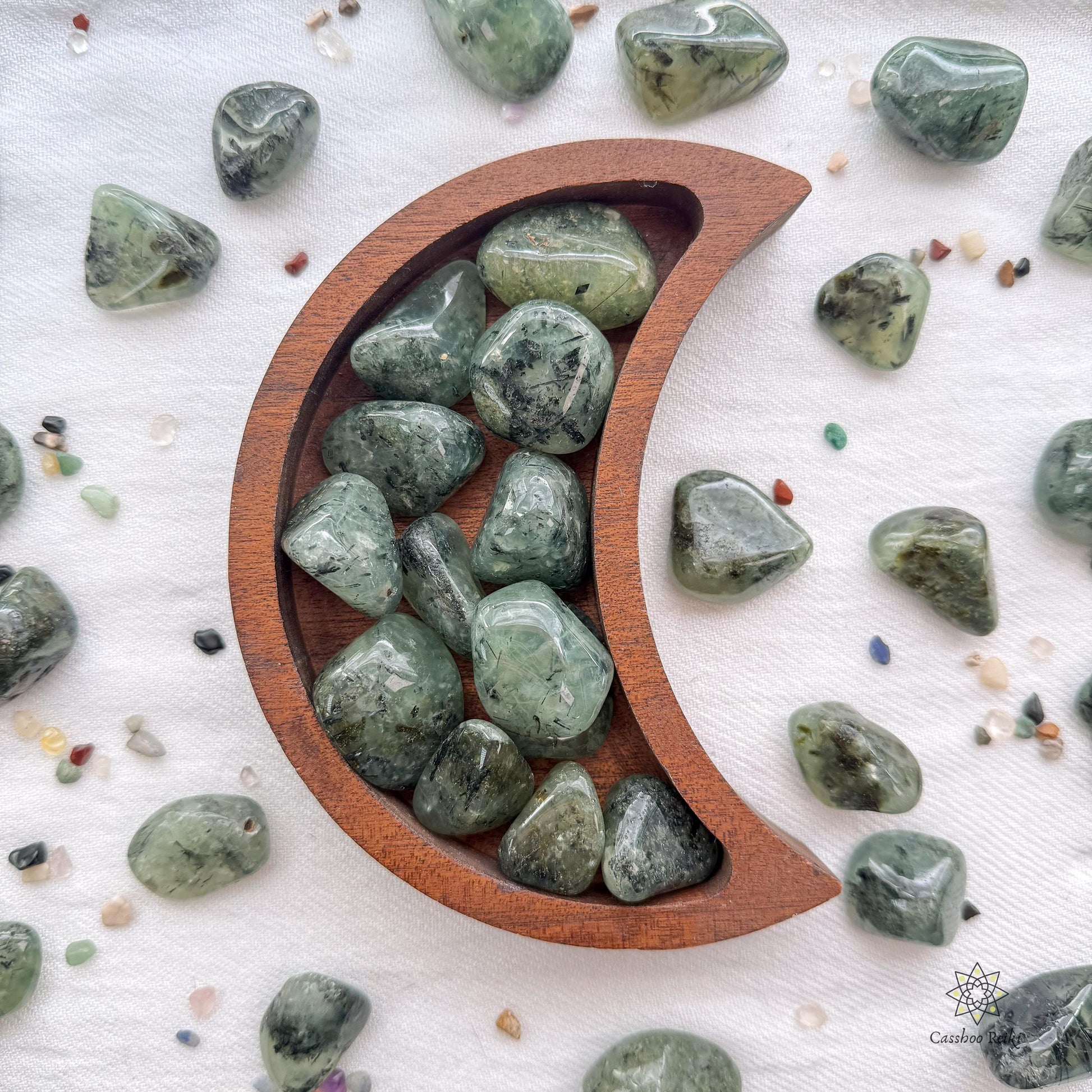 - Prehnite opens the channels for connection and psychic communication. A good companion for tarot readers and mediums who look to enhancing their intuition while being protected from the negativity of people and visions.
