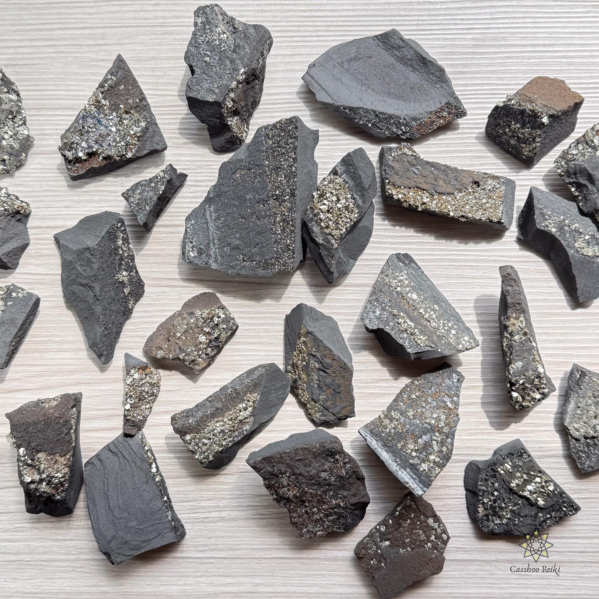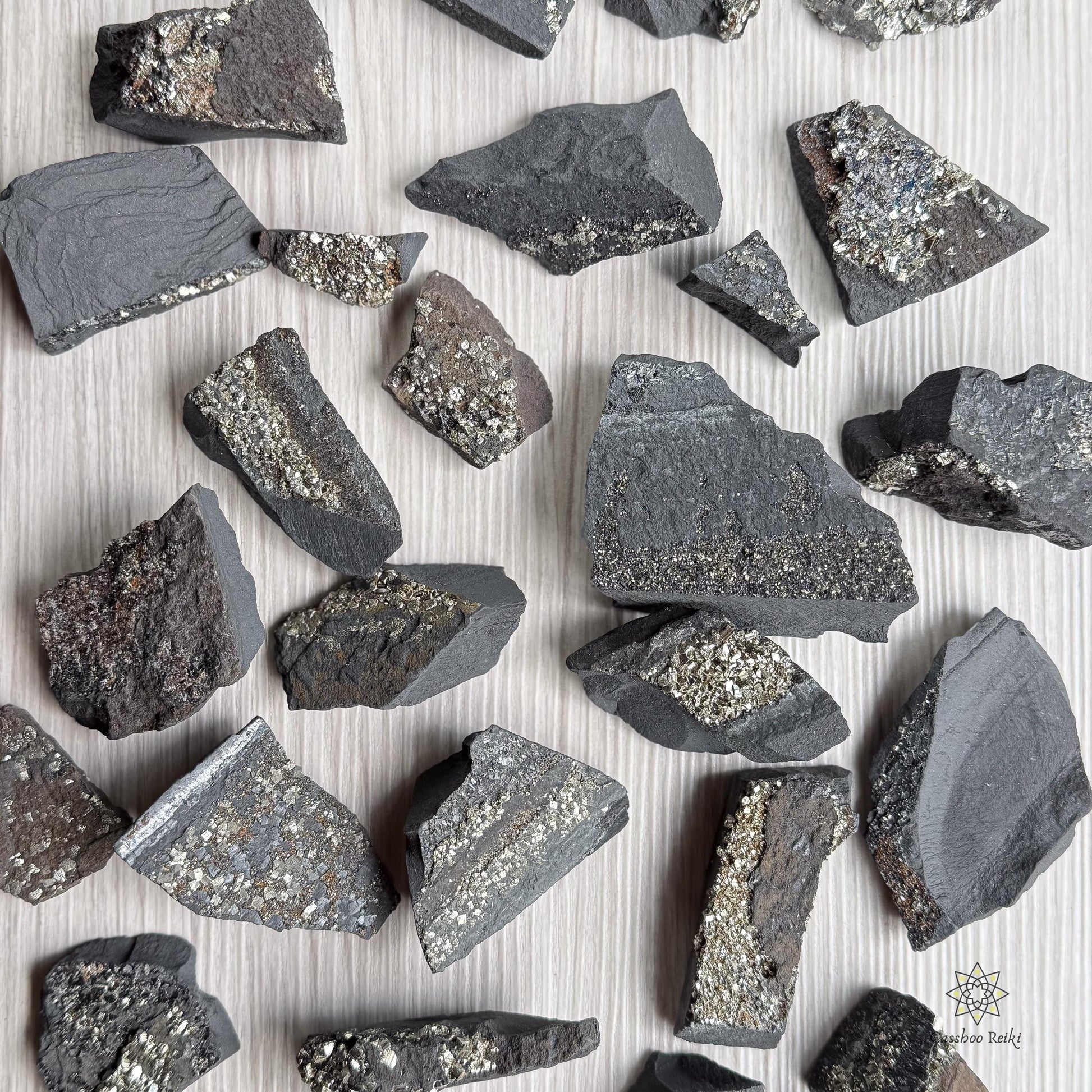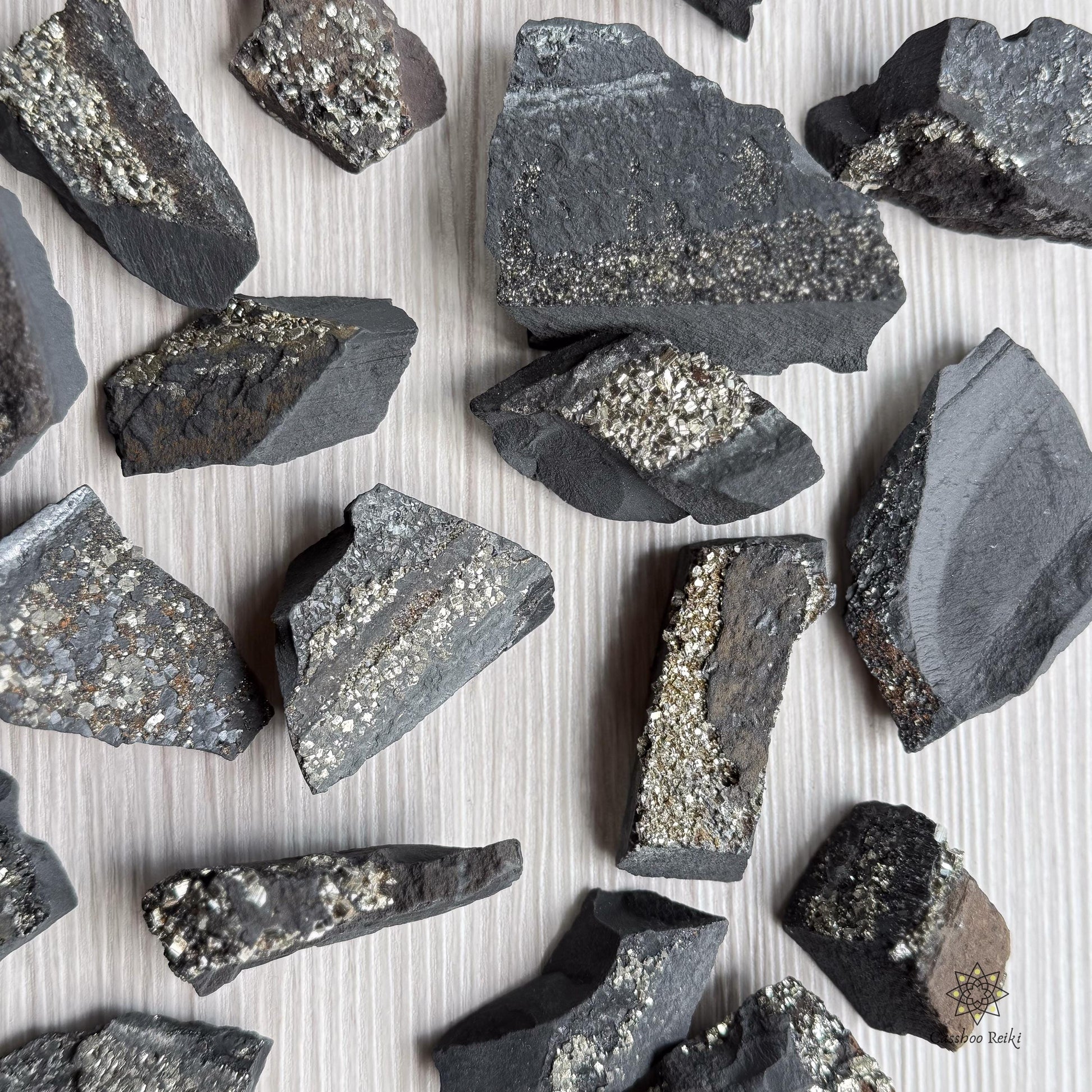 Rough Shungite with Pyrite. Crystal for Purification, Protection, and Prosperity