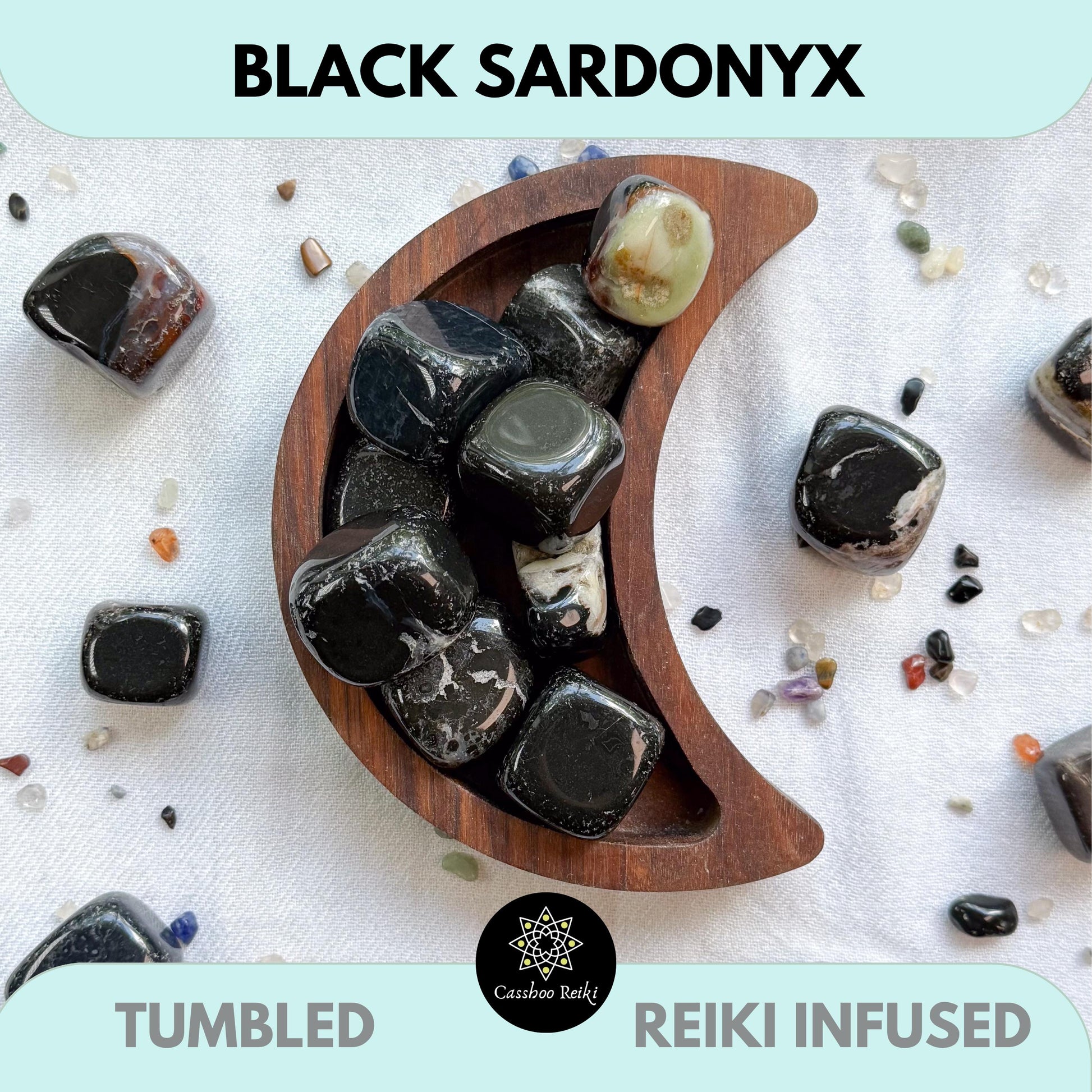 Black Sardonyx combines the properties of Sard and Agate to bring grounding, protection, courage and strength into your life: All in one stone.