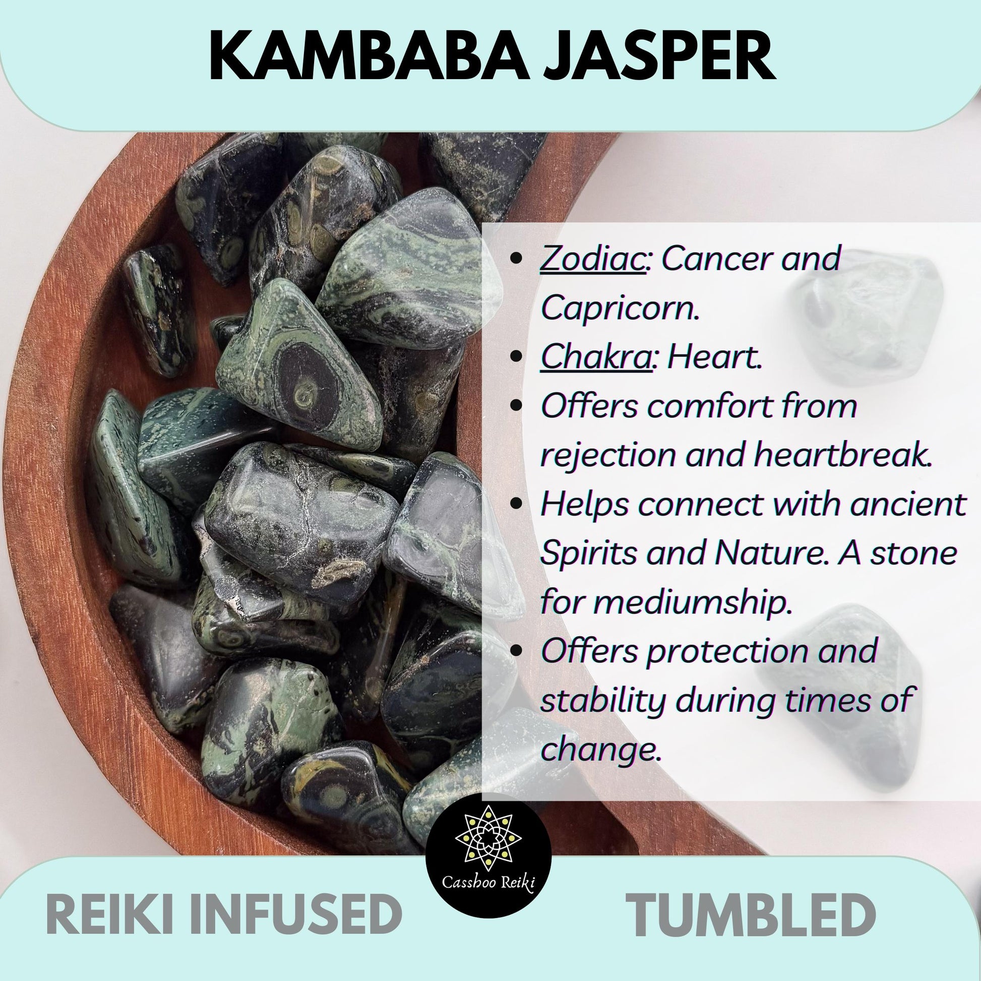 Kambaba Jasper offers comforting energies during times of high stress or change, specially those that try to shake us at emotional levels.